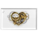 Mechanical, volumetric, steampunk heart with pressure gage, steel and gold gears on white background. Steampunk style.