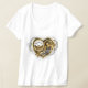 Mechanical, volumetric, steampunk heart with pressure gauge, steel and gold gears on white background. Steampunk style.