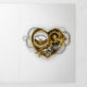 Mechanical, volumetric, steampunk heart with pressure gauge, steel and gold gears on white background. Steampunk style.