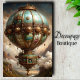 Add artistic flair to your spaces with Decoupage_Boutique's premium fantasy balloon decoupage paper. This extraordinary design features an ornate steampunk hot air balloon with intricate brass detailing, turquoise panels, and decorative embellishments against a dramatic cloudy sky. This design creates an elegant focal point perfect for studies, themed restaurants, or victorian-inspired spaces. COLOR COMBINATIONS: teal blue, antique gold, rich bronze, cream white, and stormy gray enhance natural beauty. DESIGN FEATURES: ornate metalwork details, fantasy landscape vignettes, and dramatic sky perspective bring depth to your projects. PERFECT FOR: treasure boxes, accent walls, book covers, escape room venues, side tables, and decorative screens. Ideal for a variety of projects both large and small. #DecoupageBoutique #SteampunkArt #FantasyDecor #AdventureArt #VictorianStyle