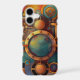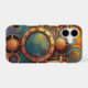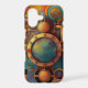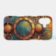 A bold steampunk-inspired geometric artwork featuring metallic circles, brass panels, pipes, bolts, and mechanical structures fused into an abstract industrial composition. The rich blend of teal, copper, and gold tones gives the piece a warm retro-futuristic atmosphere. Perfect for tech accessories, posters, home decor, apparel, and gifts for fans of steampunk, machinery, and industrial design.