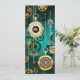 Jewelry, gold watch with a gold chain and keys on a green textural background. Steampunk style.