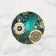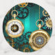 Jewelry, gold watch with a gold chain and keys on a green textural background. Steampunk style.