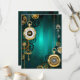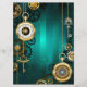 Jewelry, gold watch with a gold chain and keys on a green textural background. Steampunk style.