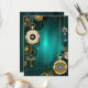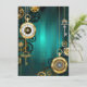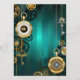 Jewelry, gold watch with a gold chain and keys on a green textural background. Steampunk style.