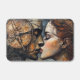Steampunk matchboxes. Illustration of a man and woman in a kiss.