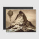 A Steampunk style hot air balloon floats across the Matterhorn mountain. Digital art in sepia