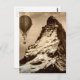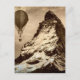 A Steampunk style hot air balloon floats across the Matterhorn mountain. Digital art in sepia