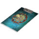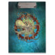 Steampunk inspired industrial rusty clockwork gears, and octopus design on a vibrant blue patina background.