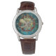 The watch looks really great! Very sharp and well done. The leather band is really nice, though for a man's watch I think it should be longer. Unfortunately, it isn't big enough for my husband's wrist but I will get a replacement because he is very excited to wear it!