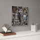 Steampunk themed, Old West with Barrels and Safe. Unique clock with old western style building fronted with safe and barrels. Numbers in black/brown combination.