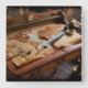 Steampunk Olde Worlde Map and Desk Square Wall Clock