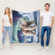 Steampunk Polar Bear and Aurora Art Fleece Blanket