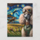 A steampunk poodle in a Van Gogh style with ducks in the field