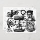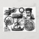 Here is a black and white graphic design featuring the ideals of steampunk or victorian inventions. Add your own text or statement to personalize this wonderful design. Great as a gift for inventors, teachers, scientists, innovators, statement makers, designers and more. Featured are steam powered engine and floating airplane, gears, googled man, lightbulb, typewritter, bicycle, hand and rider, clock and compass.
