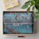 Steampunk robin adorned with gears and clocks, set against a blue background. Ideal for furniture restyling and other creative projects.
