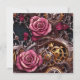 Pretty personalized gothic Victorian steampunk photo template Valentine's Day card. Beautiful pink roses, gold, silver and copper metal gears. The back has three spaces for pictures in the shape of a heart. You can edit the text too in the personalize area.