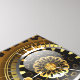Turquoise lenses with an antique watch with brass gears and golden keys on rusty, brown background. Steampunk style.