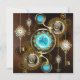 Turquoise lenses with an antique watch with brass gears and golden keys on rusty, brown background. Steampunk style.