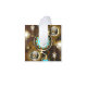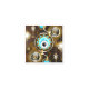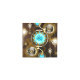 Turquoise lenses with an antique watch with brass gears and golden keys on rusty, brown background. Steampunk style.
