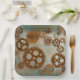 Victorian steampunk paper plates for any occasion. Rusted gears image over distressed blue background. Perfect for birthday parties and other occasions.