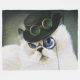 Long haired siamese cat portrait wearing a steampunk top hat with goggles and a glass monocle.