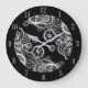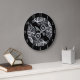 Steampunk style clock, with black background with 3-dimensional silver gears.