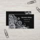 Steampunk style business card, with black background with 3-dimensional silver gears.