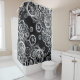 Steampunk style shower curtain, with black background with 3-dimensional silver gears.