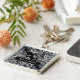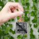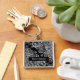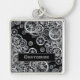 Steampunk style key chain, with black background with 3-dimensional silver gears.
