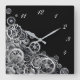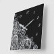 Steampunk style clock, with black background with 3-dimensional silver gears.