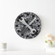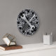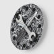 Steampunk style clock, with black background with 3-dimensional silver gears.