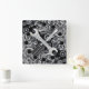 Steampunk style clock, with black background with 3-dimensional silver gears.