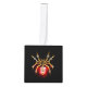 Mechanical, steampunk spider with gold, brass gears and a red glass lamp on a black background. Steampunk style.