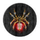 Mechanical, steampunk spider with gold, brass gears and a red glass lamp on a black background. Steampunk style.