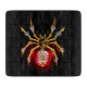 Mechanical, steampunk spider with gold, brass gears and a red glass lamp on a black background. Steampunk style.