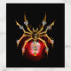 Mechanical, steampunk spider with gold, brass gears and a red glass lamp on a black background. Steampunk style.