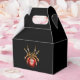 Mechanical, steampunk spider with gold, brass gears and a red glass lamp on a black background. Steampunk style.