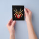 Mechanical, steampunk spider with gold, brass gears and a red glass lamp on a black background. Steampunk style.