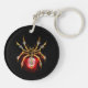 Mechanical, steampunk spider with gold, brass gears and a red glass lamp on a black background. Steampunk style.