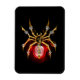 Mechanical, steampunk spider with gold, brass gears and a red glass lamp on a black background. Steampunk style.