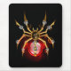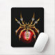 Mechanical, steampunk spider with gold, brass gears and a red glass lamp on a black background. Steampunk style.