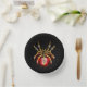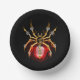Mechanical, steampunk spider with gold, brass gears and a red glass lamp on a black background. Steampunk style.