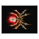Mechanical, steampunk spider with gold, brass gears and a red glass lamp on a black background. Steampunk style.