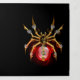 Mechanical, steampunk spider with gold, brass gears and a red glass lamp on a black background. Steampunk style.