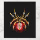 Mechanical, steampunk spider with gold, brass gears and a red glass lamp on a black background. Steampunk style.