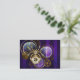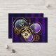 Steampunk spider made of gold and steel with antique watches decorated with gold gears on purple, striped, textured background with lenses and brass gears. Steampunk style.