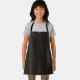 Great color and even though I ordered the kid size, it covers well enough to use during the holidays. I am not a big woman and prefer a shorter apron. I stand 5"6" and the length of the garment goes to mid-thigh. The tie straps fit well at my waist and even though there is no neck strap adjustment, the opening is plenty big enough. I am happy with the size and fit. I am sharing my apron with my 10 year old grandson, too! The color is vibrant and looks good, as shown on the website. The stitching looks strong and reinforced. Photographed is front side and back side of the apron, reinforced straps and coloring. My phone camera may not be the best at showing the details.
