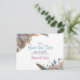 Pretty steampunk themed wedding Save the Dates. Pretty metal gears, turquoise feathers and flowers hidden in a metal gears and trinkets.