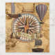 Create your own hip Steampunk-style collage. Retro futuristic flying ship, anachronistic wooden raft and Neo-Victorian hot air balloon decorate a vintage compass rose over an antique world map with transportation illustrations. Replace the sample text on the golden banner with your own for a personalized gift. Makes a wonderful year-round gift for anyone who enjoys travel, adventure, Steampunk aesthetics, industrial machinery, science fiction/fantasy, 19th-century technology, historical fiction, Neo-Victorian inventions, travel paraphernalia and related cool stuff.